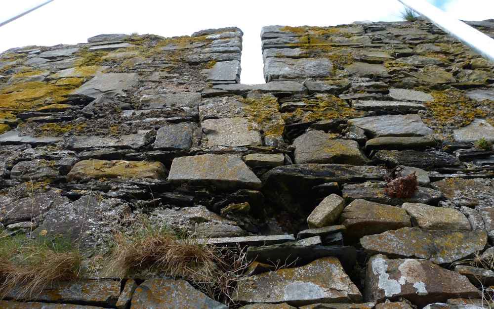 The problem with the tops of Mingary's walls at the time rebuilding started was that they were ragged from loss of stone. Every piece of rock, and all the mortar, has had to be carried up manually. One of the builders estimated that there was sixty tonnes of it in all.
