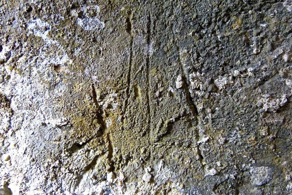 Some graffiti has been found scratched into the plastered walls of the chapel. And this isn't any old graffiti. Archaeologist Tom Addyman reckons it was put there when the chapel was first built within the three metre thick north curtain wall, some time between 1265 and 1295.