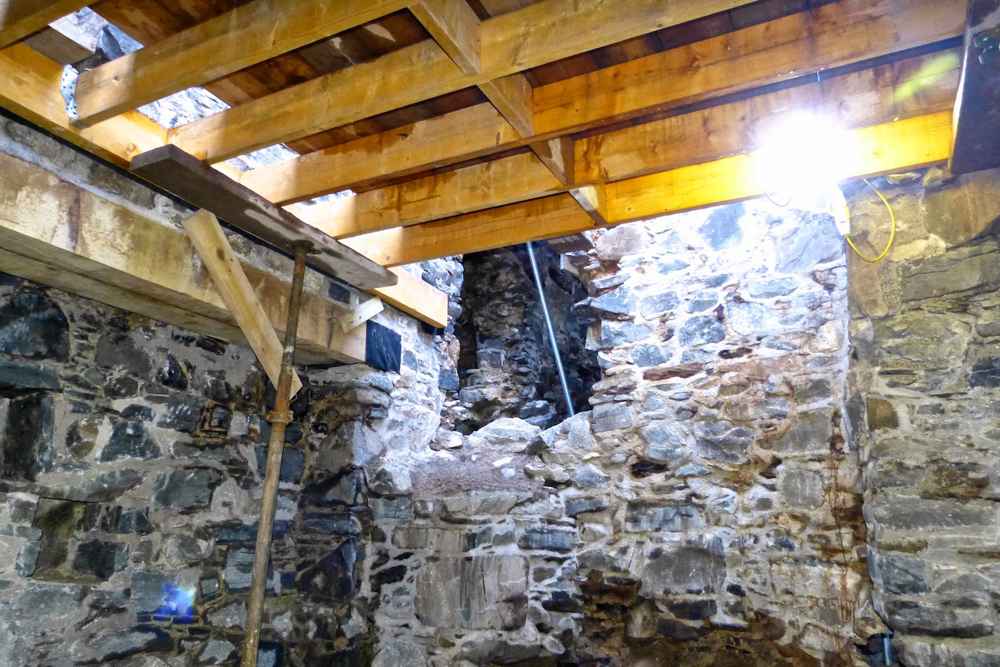 Meanwhile, Damien Summerscales has completed the repairs to the interior of the sea-facing curtain walls, and laid the foundation of the walkway which will run round the battlements, and which will be topped with whinstone flags. Residents will be able to walk from the attic room right round the battlements.