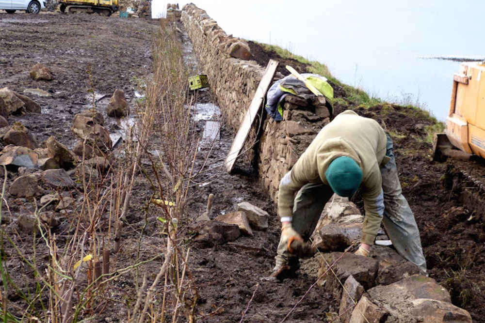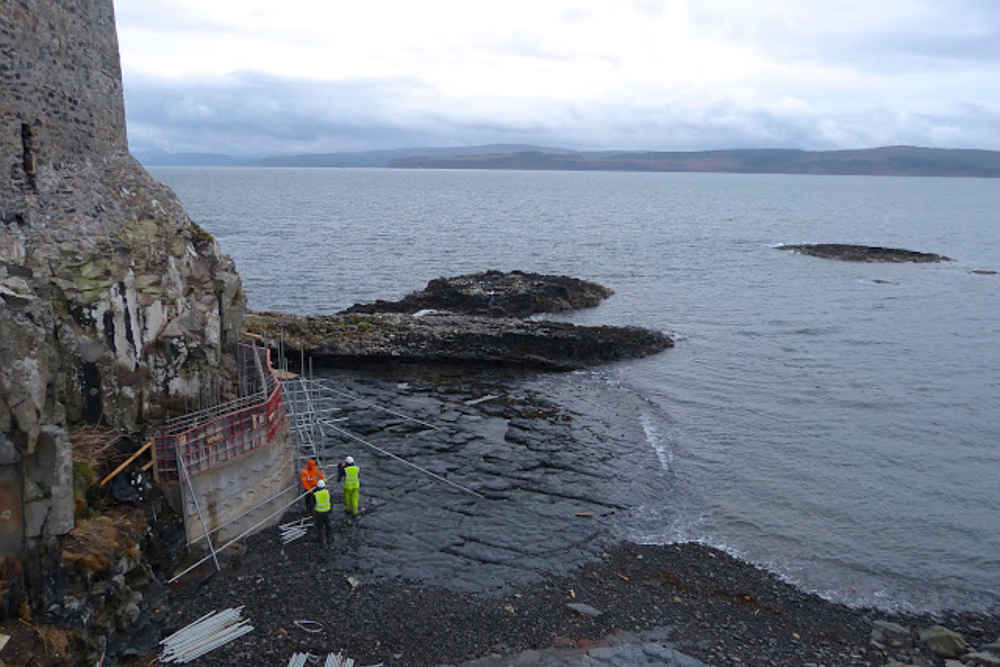 Up to now, the work on site at Mingary Castle has been surveying, stabilising the bedrock, mapping and recording, archaeological investigations and excavations, and cleaning and preparing the walls. Now a corner has been turned as, for the first time, the builders start on the rebuilding of the structure.