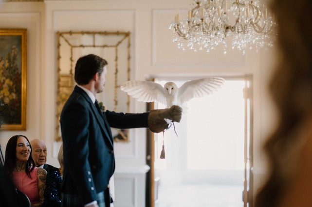 Outdoor ceremonies look splendid out on the front lawn, framed by the ancient ornate stone wall dotted with elegant flowering planters, which surround the delightful and well-tended Italian gardens. The tall, billowing blooms that fringe the edge add a sense of romance, whilst the lush lawn interspersed by symmetrical, gravel paths provide a tranquil and scenic setting for your nuptials and reception drinks. Add the magic touch of a Scottish piper to pipe you or your guests into the ceremony.