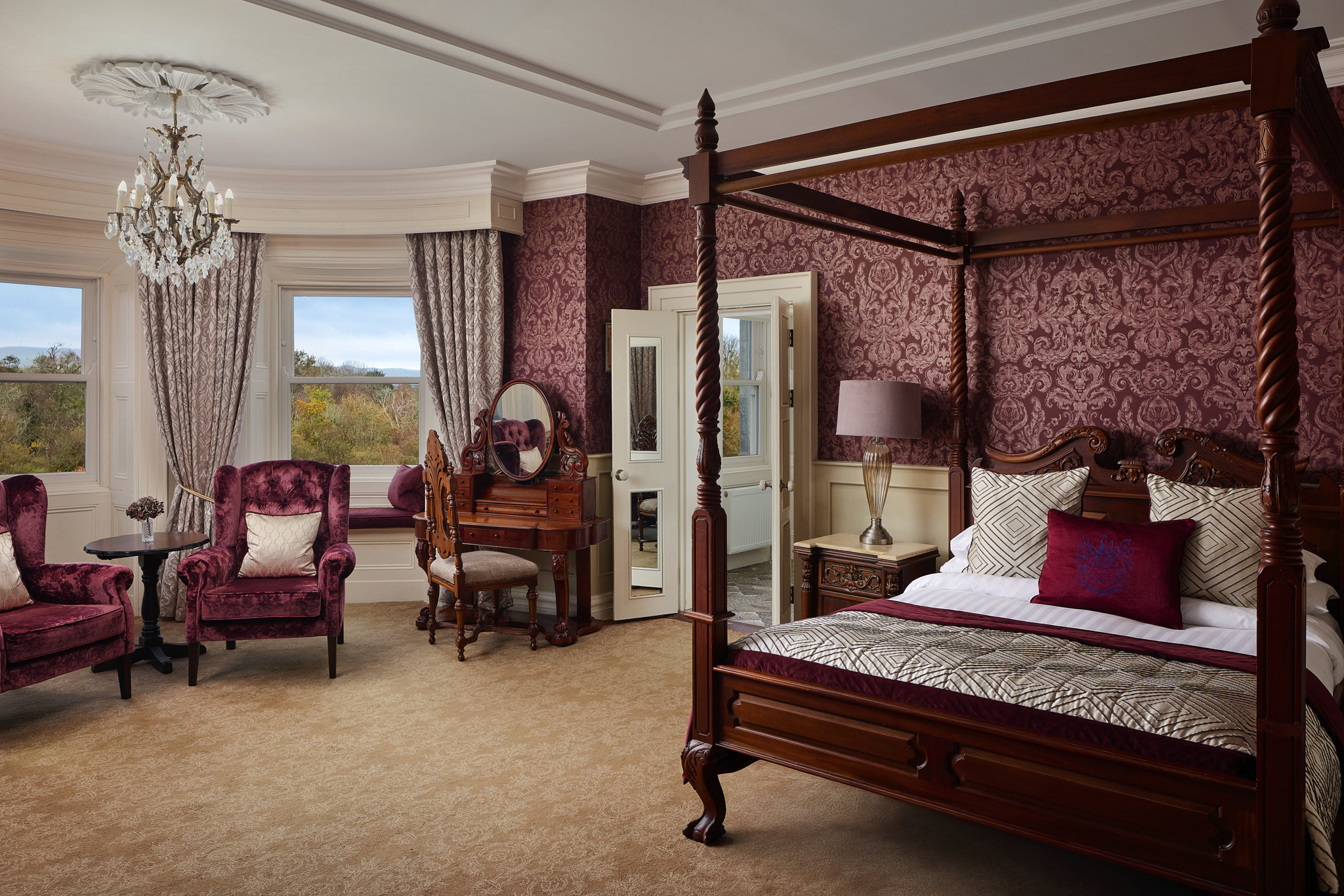 Ballyseede Castle features 40 luxurious en-suite bedrooms, pristinely presented and dressed in decadent fabrics, equally balancing comfort and style. Many feature four-poster beds and garden views through long windows. The varied rooms are full of character, and each has been carefully decorated to retain the character and charm of castle living.