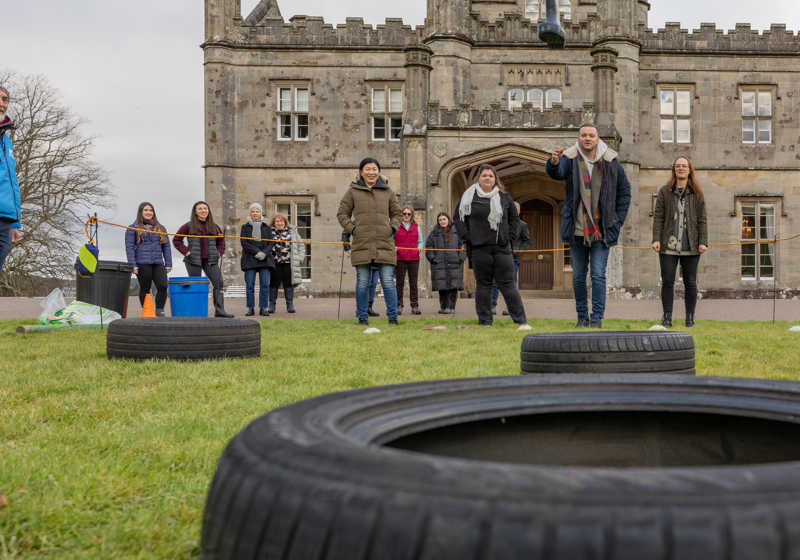 - Team-building exercises on the castle lawns, including mini-Highland games, clay-pigeon shooting, and bubble football.