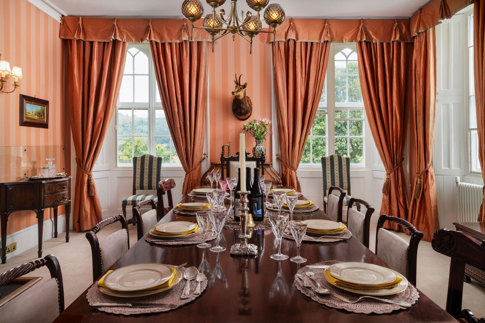 Refined period details, from wood panelling to antique furnishings and ornate fireplaces, create an atmosphere of old-fashioned luxury, whilst modern amenities feature subtly to ensure the most comfortable and enjoyable stay for guests. Enjoy a fully-equipped kitchen and spacious living areas.