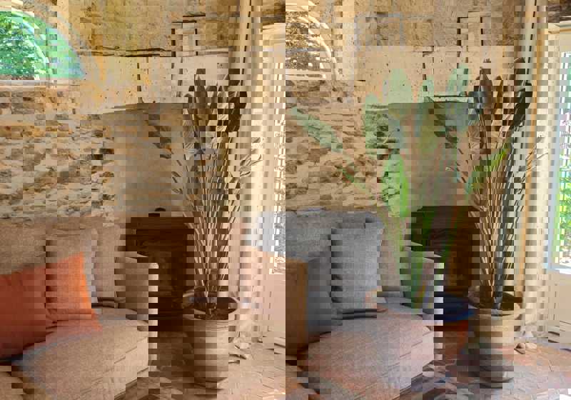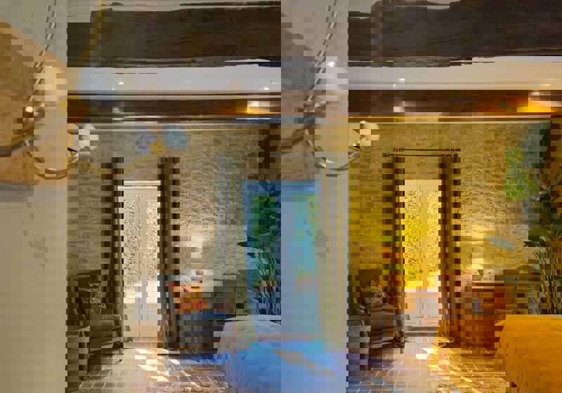 Built in the 1800s, the property impresses with its traditional Neo-Gothic and Neo-Renaissance architectural designs creating a symmetrical façade. Its pale stone, weathered in parts, adds to its charm, whilst the tall topiary trees mirror the castle’s turrets and gabled roofs. Inside, generously-sized white-walled rooms are filled with natural light and styled with contemporary furniture, bold pops of colour and tactile fabrics.