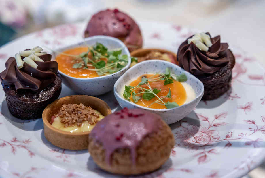 - Afternoon tea and cake, served with cans of soft drink and fruit-flavoured water