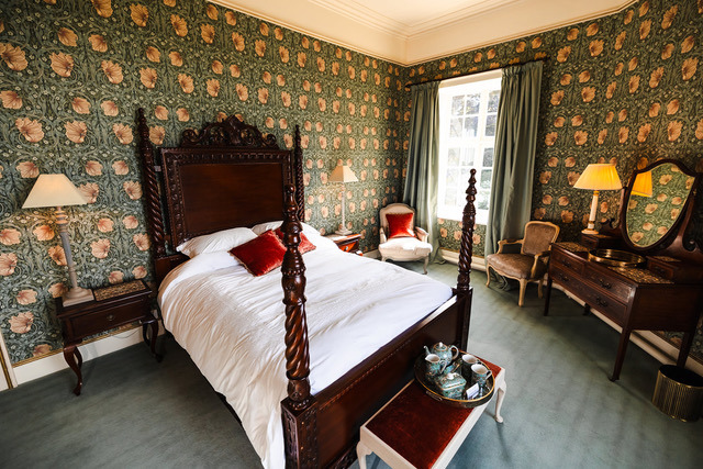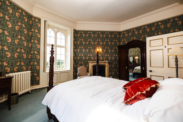 Situated in the central north turret, the unusual Round Bedroom has three large windows with views across the Hawkstone Hills and the beautiful Shropshire countryside.