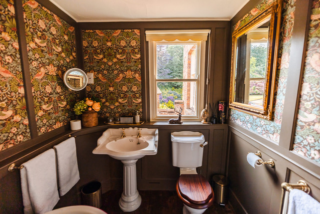 Large double doors take you through to the West Bedroom. The spacious master bedroom has a canopied, king-sized bed and views of both the garden and the Welsh Hills.