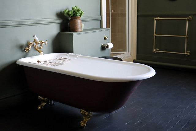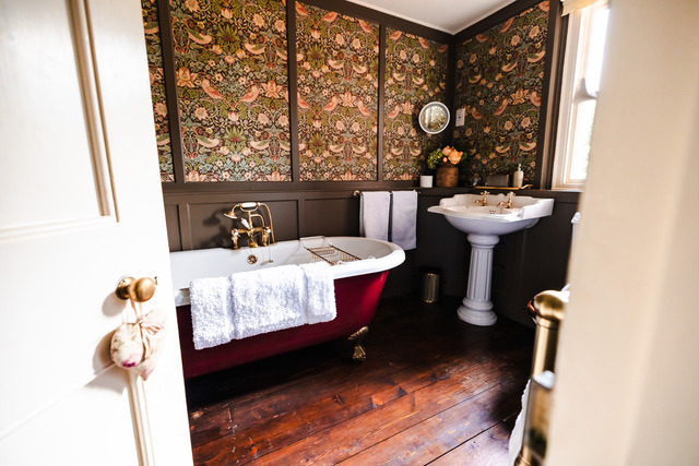 In the bathroom, the large claw-footed bath and separate power shower complete the sense of comfort and privacy.