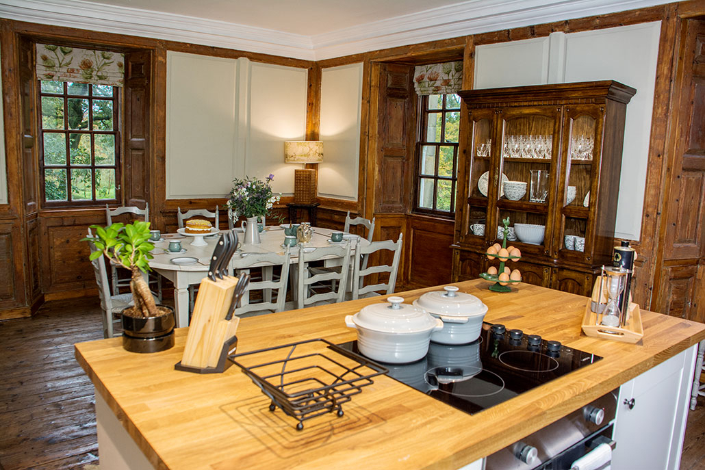 The Old Castle is well-equipped for your self-catered stay, featuring a gourmet kitchen and elegant dining facilities.