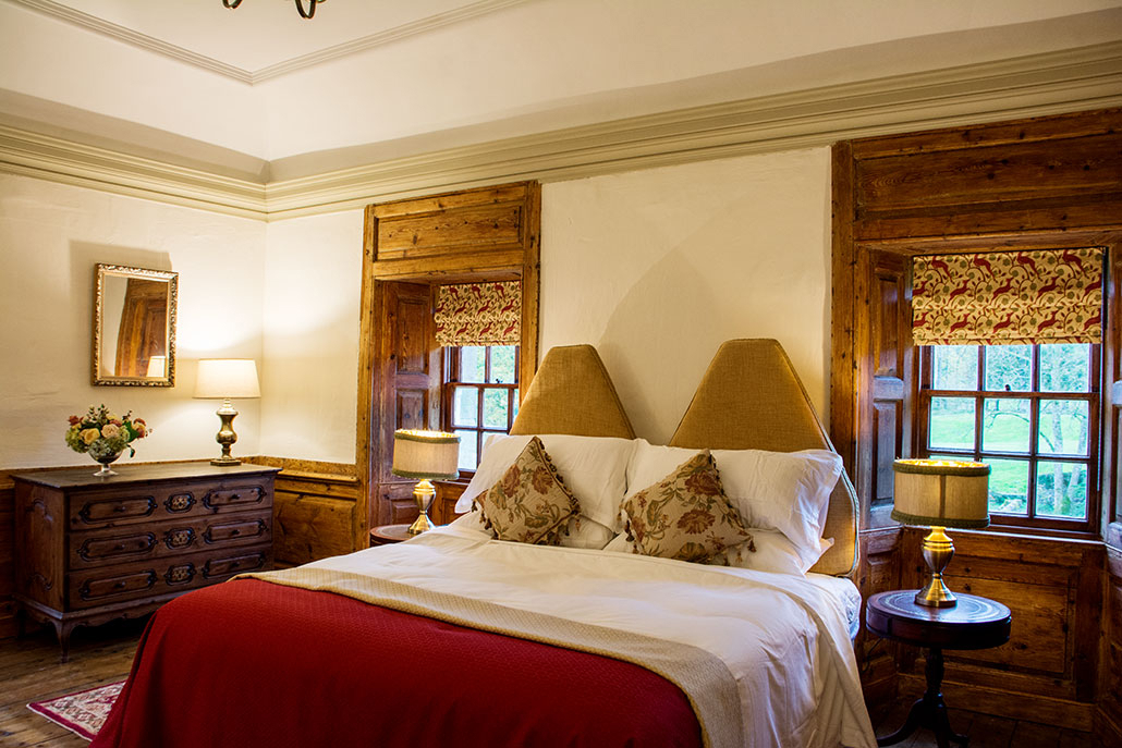 Sleeping up to eight guests, the Old Castle features four enchanting double bedrooms and a variety of luxury amenities. The comfortable rooms have maintained Rowallan’s history and character with significant original features and quality wooden furniture. Tactile fabrics and hints of bold colour add warmth and ambience within these ancient walls, and little details help to create a most inviting stay.