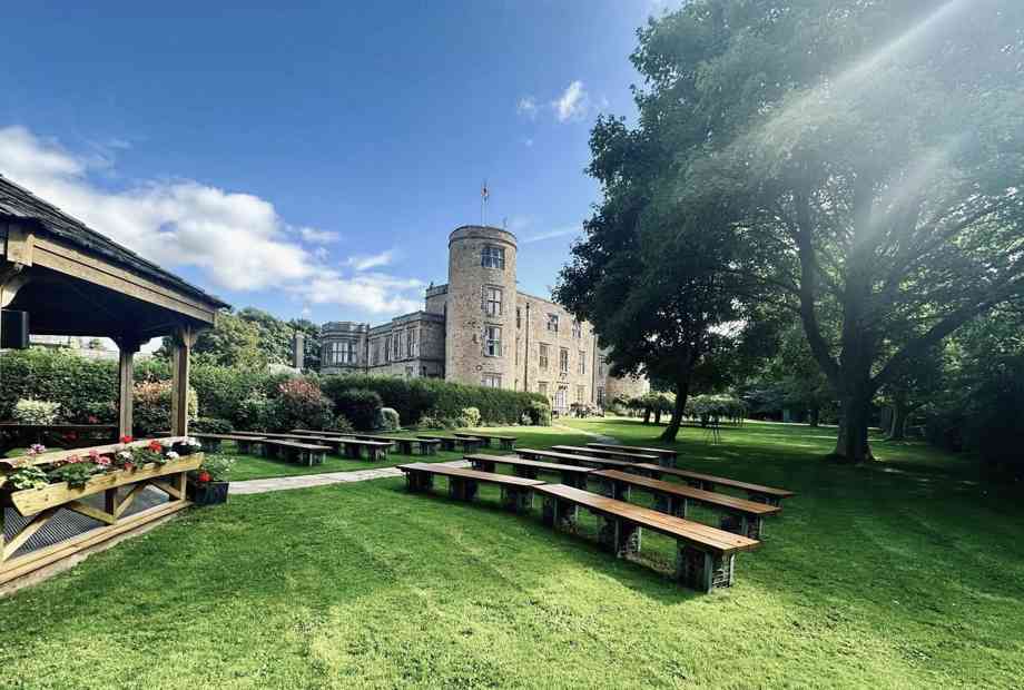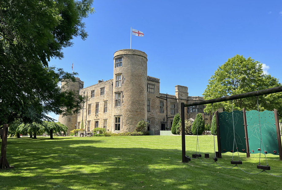 The castle boasts an outdoor seating area with parasols to the rear of the hotel, which seats over 50 people and there is a children's adventure climbing frame area.