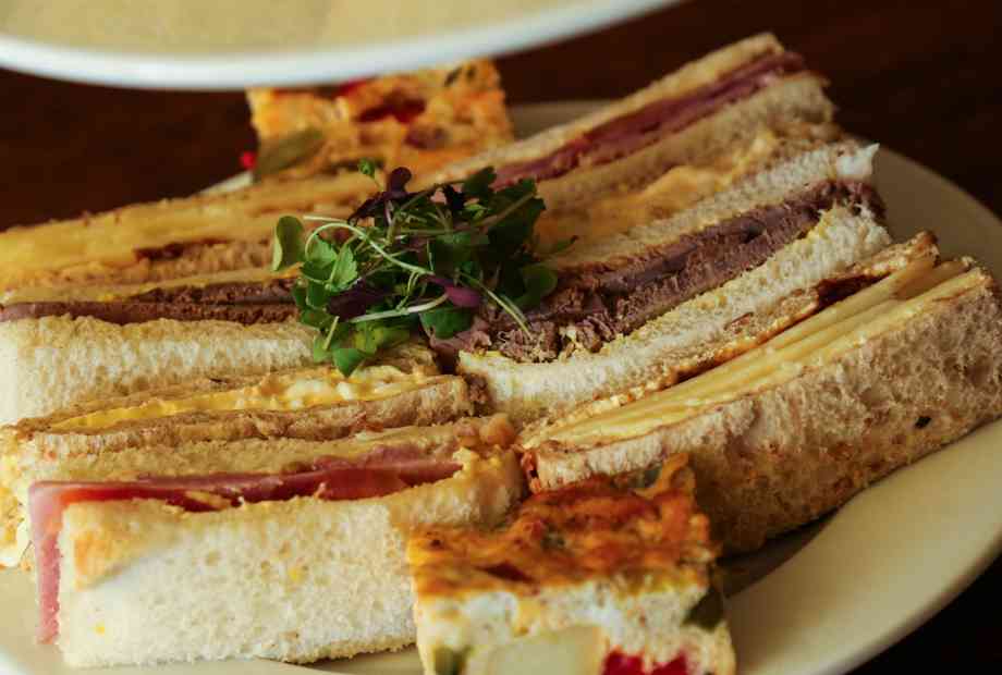 Afternoon tea consists of a delicious range of dainty sandwiches, homemade cakes and scones served with clotted cream and preserves with a pot of tea or coffee. There is also the option of adding a glass of wine or Champagne if you are celebrating a special occasion