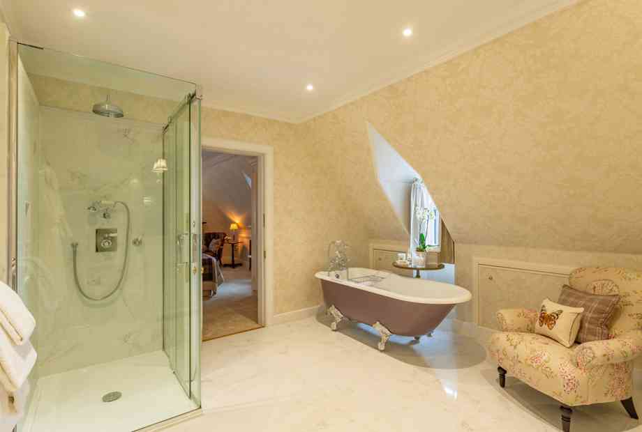 The apartment also offers a sauna, a beauty treatment and massage room, plus private-use elevator. A spiral stone staircase provides access to the historic turrets of Glenapp Castle where, by day, you can soak up panoramic views and, come nightfall, simply marvel at the stars.